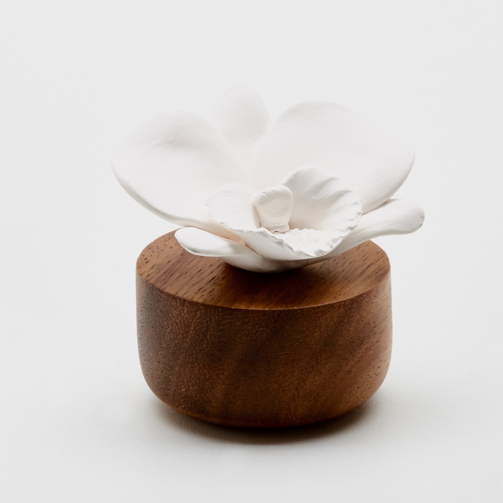 Elegantiško dizaino kvepalų ir eterinių aliejų difuzorius su porcelianine orchidėjos formos gėle ant akacijos medžio pagrindo. Sukurtas rankomis Prancūzijoje, naudojant tik natūralias medžiagas.